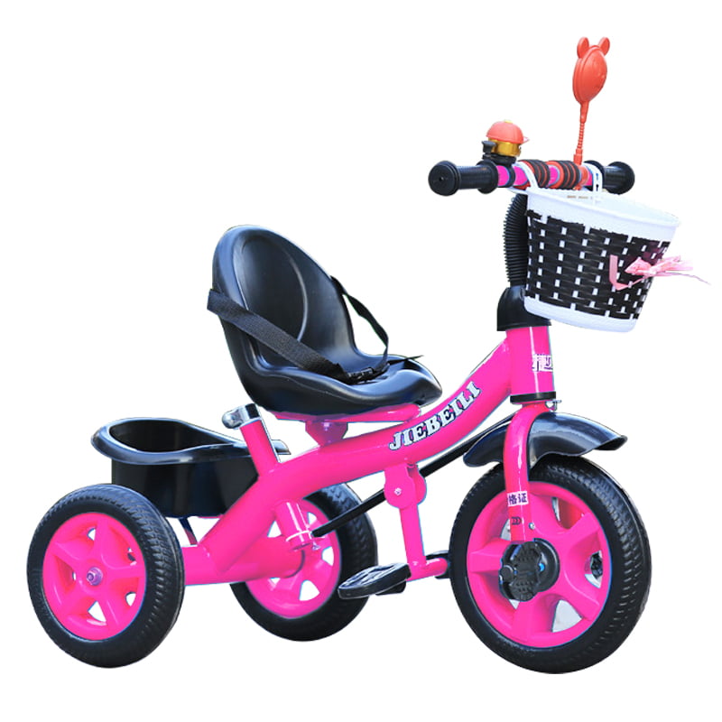 Tricicleta ideala pentru copii activi, care au de acum cu ce sa exploreze imprejurimile. Tricicleta pentru copii este ideala pentru toti micutii si este jucaria care te va ajuta sa-i scoti din casa in aer liber. Scaunul are o forma speciala pentru a-i asigura confortul in timpul deplasarii si dispune si de o centura pentru o mai mare siguranta la utilizarea tricicletei, iar rotile sunt fabricate din plastic cauciucat astfel incat plimbarea celui mic sa fie cam mai placuta si confortabila. Este prevazuta cu doua cosuri pentru jucarii, unul pe ghidon, iar celalalt in spate.
